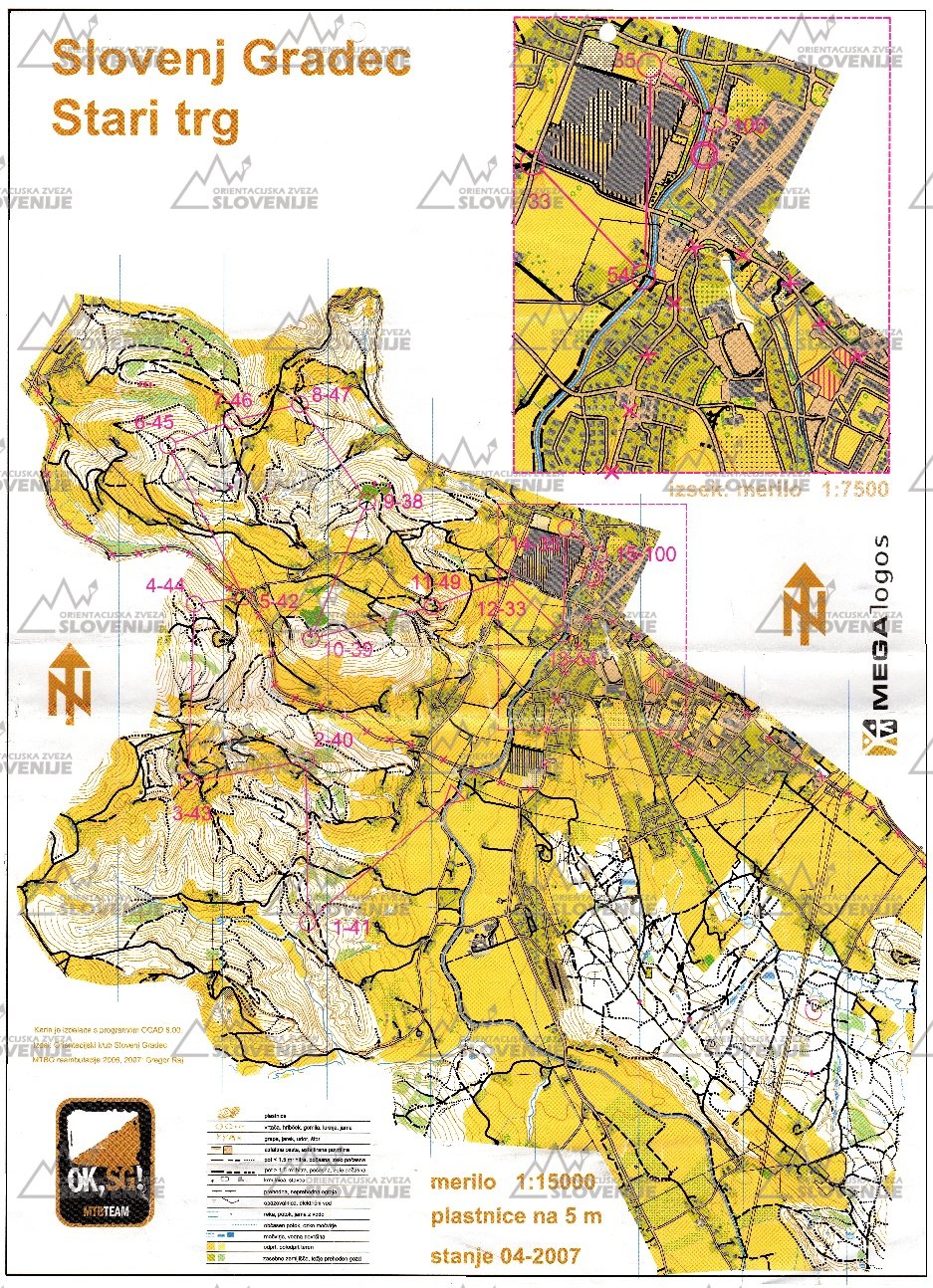 | 2 | Slovenj Gradec – Stari trg | MTB-O | 1:15000 | IV. 2007 | 12.3km2 |