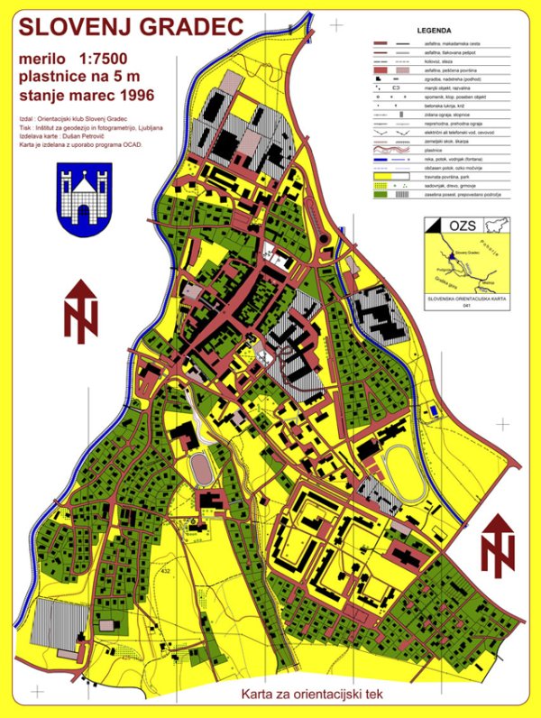| Mestna karta Slovenj Gradca. Kasneje uporabljena tudi za MTBO karto. | |